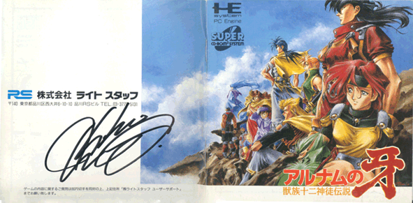 『直筆サイン入りPCエンジン版アルナムの牙マニュアル』