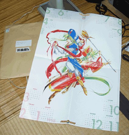 1997年4月17日に発信されたファンクラブ5号に同封されていた第一期会員特典のポスターカレンダーです。 ずっと公開できませんでしたが、デジカメを購入したこともあり、気軽に大きいものも写せるようになり公開した次第です。 このコレクションページは一年以上ぶりの更新で、改めて今回ファンクラブの会誌を出しましたが、よくとってあったと本当に思います。上の写真を見てもらっても分かりますが、封筒までちゃんと残っており、中身も当時のまますべて現存しています(ファンクラブ会誌全て)。 ファンクラブに入っていたのは私がちょうど高校のころだったので、ずいぶん時間がたったな〜と思ってしまいます。 2003.5.15更新 |