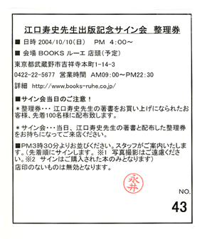 | 整理券のもらえる条件 | 江口先生の著書を購入 |