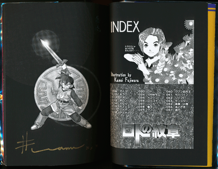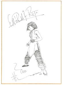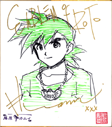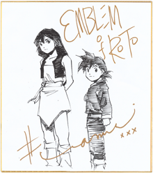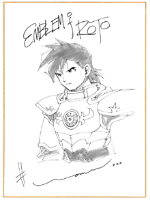 ロト紋より〜キラ&ヤオ 左のサインを頂いた時、 いつも入れてもらっている 「EMBLEM OF ROTO」を 書いていただくのを忘れたため、 後日書いていただきました。 |