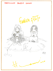ロト紋より〜ポロン&サクヤ どんなのが出来上がるのか ドキドキでしたが、 先生、期待を裏切らない凄まじい 'ほのぼの'したサインを描いて 下さいました。 細かい絵柄なので 大きい画像で お見せできないのが残念。 |