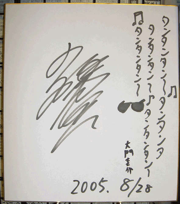 えーと・・・、この色紙はですね説明すると昔、西部警察っていうテレビあったの憶えていますか?その初期のころに流れていたオープニングの音楽を書いているんですね。