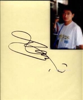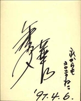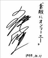 ネットオークションで偽物サインを売る方がおり、その複製元となるサインをこのサイトから入手して悪用している方がいるため、 ほぼ全てのページの拡大されたサイン画像の公開を廃止いたします。 そういった事情があるために、今後はもらった時のレポート、入手場所などを悪用される恐れがあるので、 特定のサイン以外は補足程度の記載、又は書かないことに致しました。 なお、いままで載せていたサインに関しては差しさわりのない程度に修正してあります。