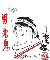 NO14(14) 漫画家 木多康昭 『泣くようぐいす』 (週刊少年マガジン刊行) (千石うぐいす) 直筆イラストサイン色紙 ※ 顔はモザイクで隠してあります