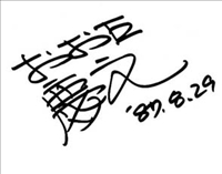 ネットオークションで偽物サインを売る方がおり、その複製元となるサインをこのサイトから入手して悪用している方がいるため、 ほぼ全てのページの拡大されたサイン画像の公開を廃止いたします。 そういった事情があるために、今後はもらった時のレポート、入手場所などを悪用される恐れがあるので、 特定のサイン以外は補足程度の記載、又は書かないことに致しました。 なお、いままで載せていたサインに関しては差しさわりのない程度に修正してあります。