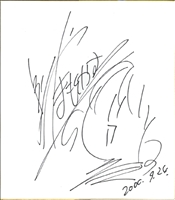 ネットオークションで偽物サインを売る方がおり、その複製元となるサインをこのサイトから入手して悪用している方がいるため、 ほぼ全てのページの拡大されたサイン画像の公開を廃止いたします。 そういった事情があるために、今後はもらった時のレポート、入手場所などを悪用される恐れがあるので、 特定のサイン以外は補足程度の記載、又は書かないことに致しました。 なお、いままで載せていたサインに関しては差しさわりのない程度に修正してあります。