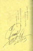 ネットオークションで偽物サインを売る方がおり、その複製元となるサインをこのサイトから入手して悪用している方がいるため、 ほぼ全てのページの拡大されたサイン画像の公開を廃止いたします。 そういった事情があるために、今後はもらった時のレポート、入手場所などを悪用される恐れがあるので、 特定のサイン以外は補足程度の記載、又は書かないことに致しました。 なお、いままで載せていたサインに関しては差しさわりのない程度に修正してあります。