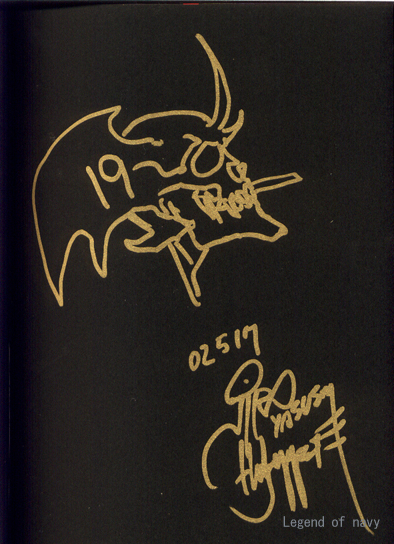 韮澤氏の書籍『デビルマン・ザ・リスト』を通販で購入した際に特典としてサイン入りの本を買うことができました。サインだけと思っていたらイラスト入りだったのでちょっと得した気分だったのを憶えています。このイラストはたぶん『アモン』だと思うのですが違ってたらごめんなさい。