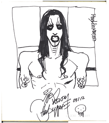 ついに描いてもらいました!あのマリリン・マンソンを!!知らない人がいると思うので一応説明すると、マンソンフィギュアを造形した人が韮澤さんです。