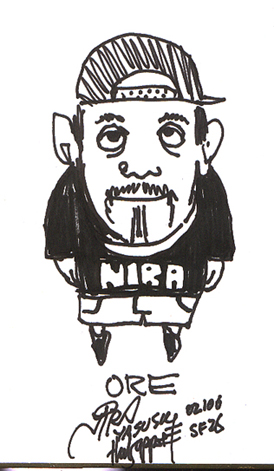 寄せ書き3人目は自画像です。すべてが絵で埋まった時、執筆者である韮澤さんが真ん中にくるようにと、この寄せ書きの色紙の真ん中に描いてもらいました。
