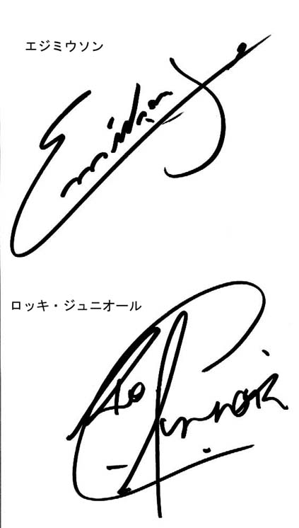私は今まであまりサッカー選手のサインを展示していませんでした。それは他のことにも言えるのですが、 よく存じている人はサインを見て凄いと思うモノでも興味がない人は全く分からないのが実状です。とくにサッカー選手になると 大勢いますし公開しても分からない人が多く出るので一般によく知られている人のサインを少しだけ公開してきました。 しかしながら今回、ワールドカップの開催に合わせ私の持っているサッカー選手のサインの2/3を一気に公開いたします。 関心がない方もこれを見て少しでも興味がでてきたら選手の名前を検索エンジンにで検索してみてください。 凄い人ばかりです。 というわけで今回に限り一人一人の詳しい補足は書いていません。 さて皆さんは何人知っています? 2002.5.22 |