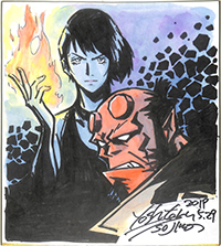)にて入っていた色紙です。 当たった色紙は『ヘルボーイ』に登場のヘルボーイ&リズ・シャーマン |