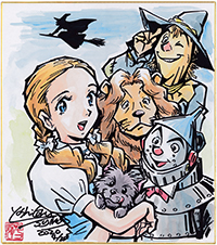 | 2020年5月30日〜31日のジャパコミオンライン合わせで描いて頂いたコミッション色紙。 今回はオズの魔法使のキャラたちを描いて頂きました。 |