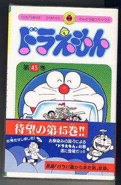 おなじみドラえもんです。今のところの最終巻となっている45巻の初版時の帯です。もう45巻が発売されて何年も経ったと思うと月日が経つのはあっという間だなーと思ってしまいます。