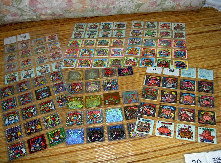 ![]() お菓子のおまけ 『悪魔VS天使シール ビックリマン』 ノーマルシール フルコンプ1080枚 昭和60年代に小学生だった方は集めた人、多いのではないでしょうか? ここまで集めたのはもう少し後になってからですけど。 小学生の時にキラシール、いわゆる『ヘッド』と呼ばれるシールを友達に大量に盗まれたのが非常に悔しく、いつかそのシールを自分の手元に取り返そうとブームが去った数年後、ヤフーオークションがまだあまり知られていないころにそのヤフーオークションやいろいろなショップでせっせと集めました。 その後、自分の取られたシールは全て集めきったのですが、どういうわけかこのシールが何枚あるのか興味を持ち「分からないなら集めちゃえ」と考え、ダラダラと集めました。 まさかノーマルシールだけで1080枚もあるとは思いませんでしたが・・・ 少年時代のトラウマ(注1)が生み出した最強のコレクションです。 一番目の写真は『ヘッド』と呼ばれるシールと最初の弾のシールです。 二番目の写真は私が小学校1年生くらいに集めていたころのシールです。この写真のシールが懐かしいと思ったら私と同年代です。 最後に発売されたビックリマンは下の写真の'31弾'と書かれているやつです。こんな弾まであったんですねー。 (注1)トラウマ 【心的外傷】 [ドイツ語] 個人にとって心理的に大きな打撃を与え、その影響が長く残るような体験。精神的外傷。外傷体験。トラウマ。 ↑まさにこの意味にピッタリですね^^: 個人的レア度『★★★★★』 昭和60年代に小学生だった者なら一度は買ったことはあるであろうビックリマン。そんな懐かしいビックリマンを全て集めるやつはそうそういないし、しかもノーマルシールって1080枚もある。そんな膨大な数のシールを全部集めきったことは資料的価値がとてもあるので評価。金さえ出せばオークションなどで買えるかもしれないが、集めるのに非常に時間が掛かるので簡単には集まらない。そしてもう一つ、裏に数字が書いてあるのだが、その数字が300番を超えると収集が極端に大変になる(360まである)(注2)。そういうことから星5つ。もしこれで「ヘッド」も全て揃っていたら星6つを進呈するだろう。 (注2)300番台が発売していた時期、既にみんなビックリマンブームが過ぎ去り、販売数が激減、そして新決戦スーパービックリマン(50円)というシールも同時販売していたことから出回った数が大フィーバー時より相当少ないらしい。 |