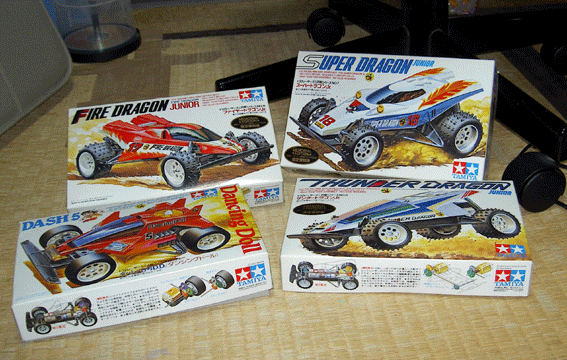 ![]() プラモ 『レーサーミニ四駆シリーズ』 上にあるお菓子のおまけ系より少し遅れてブームが起きたのがタミヤの『ミニ四駆』です。私もやりました。二カド電池が早いんですわ、これが。 どうでもいいですが、ブームの時、地元ではタミヤ製のミニ四駆が売り切れで全く買えず、何を血迷ったのか『平成号』とかいうワケの分からんミニ四駆を買いました。あまりの遅さにレースコースの坂を上れず立ち往生。スタビライザー(憶えてるか!?)を備えた後続車に吹っ飛ばされたのがいい思い出です。 ちなみに左上からファイヤードラゴン、右上スーパードラゴン、左下ダンシングドール、右下サンダードラゴンです。 ドラゴン系は復刻した時(たしか1998年くらい)にあまりの懐かしさのに買ってしまいました。 まだ探せばエンペラーやバーニングサンなどあるみたいなので見つけたら買いたいです。 個人的レア度『★★』 ミニ四駆自体は懐かしいのですが、写真の車体は98年に発売された復刻版(いまは絶版)。唯一復刻版ではない『ダンシングドール』も探せばまだ普通にプラモ屋で売っています。ですがやはり懐かしさを感じずにはいられないので星2つを私はあげたい |