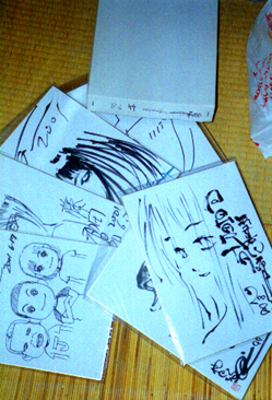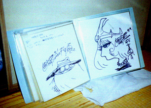 本当はファイルの内側から色紙を入れるようになっていますが、左のファイルは改良して上から入れるようにしています。 余談ですが、このファイルには松本先生の色紙だけしか入れていません。 |