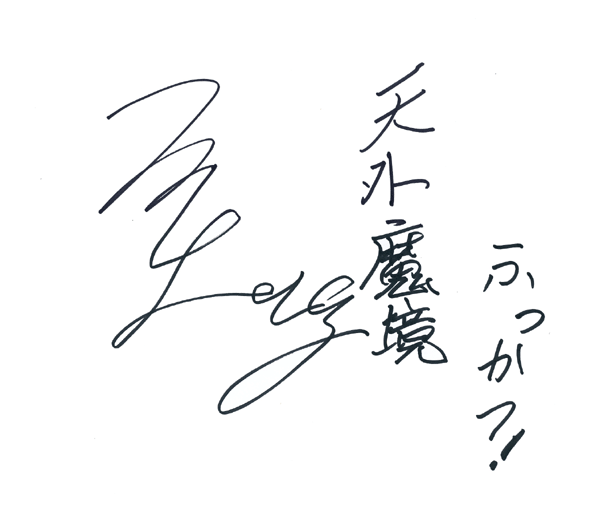 天外魔境Uの総合ディレクターの三上哲さんのサイン色紙です。ハドソンブースで天外魔境のトークショーがやっておりそれが終わったあとステージから退場する際、裏に回って頂戴しました。ハッキリ言ってこんなことやってる人は私しかいなかったので、同じく出演していた伊倉一恵さんと矢尾一樹さんのサインも次のステージを待てば余裕でもらうことができたので、もらっておけばよかったとかなり後悔しています。しかしながら三上さんのサインがもらえたこと自体はとても嬉しかったです。